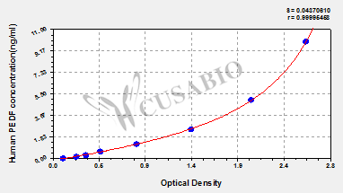 通過線性范圍來計算出實際的檢測樣本值,定量試劑盒標準曲線的相關系數R大于0.99。以CSB-E07270h(人脂聯素(ADP)ELISA Kit)為例的標準曲線。