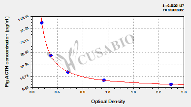 通過線性范圍來計算出實際的檢測樣本值,定量試劑盒標準曲線的相關系數R大于0.99。以CSB-E07270h(人脂聯素(ADP)ELISA Kit)為例的標準曲線。