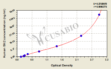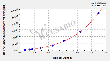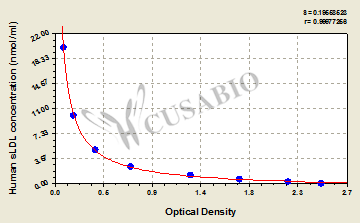 通過線性范圍來計算出實際的檢測樣本值,定量試劑盒標準曲線的相關系數(shù)R大于0.99。以CSB-E07270h(人脂聯(lián)素(ADP)ELISA Kit)為例的標準曲線。