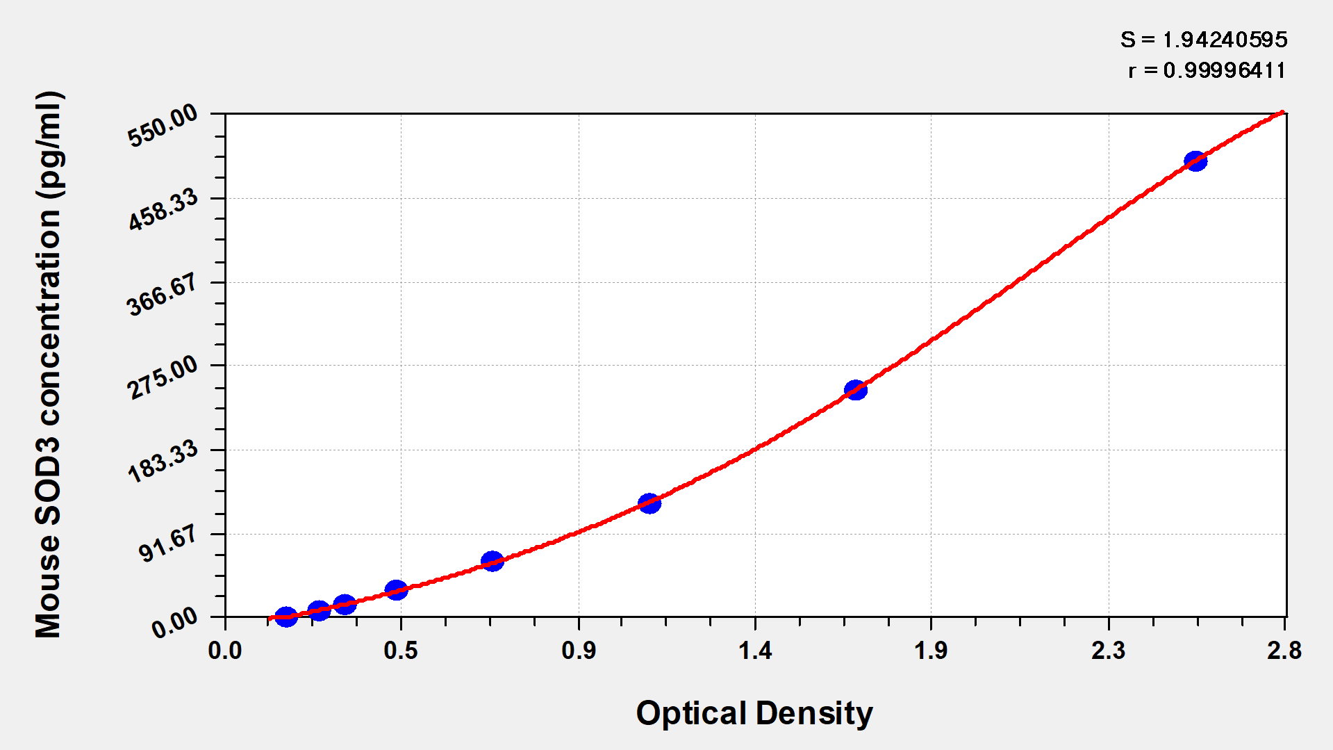 最低檢測限是靈敏度的測試指標。由使用的抗體效價等決定的,在研發(fā)過程中,一般會優(yōu)化保證高靈敏度、低背景的檢測結果從而大大提高試劑盒的靈敏度。檢測限越低,靈敏度越高。通過將零標準重復獲得的平均 O.D. 加上3個標準偏差來確定靈敏度。