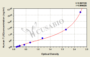 通過線性范圍來計算出實際的檢測樣本值,定量試劑盒標準曲線的相關系數R大于0.99。以CSB-E07270h(人脂聯素(ADP)ELISA Kit)為例的標準曲線。