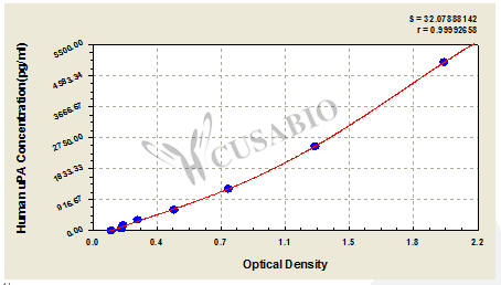 通過線性范圍來計算出實際的檢測樣本值,定量試劑盒標準曲線的相關系數R大于0.99。以CSB-E07270h(人脂聯素(ADP)ELISA Kit)為例的標準曲線。