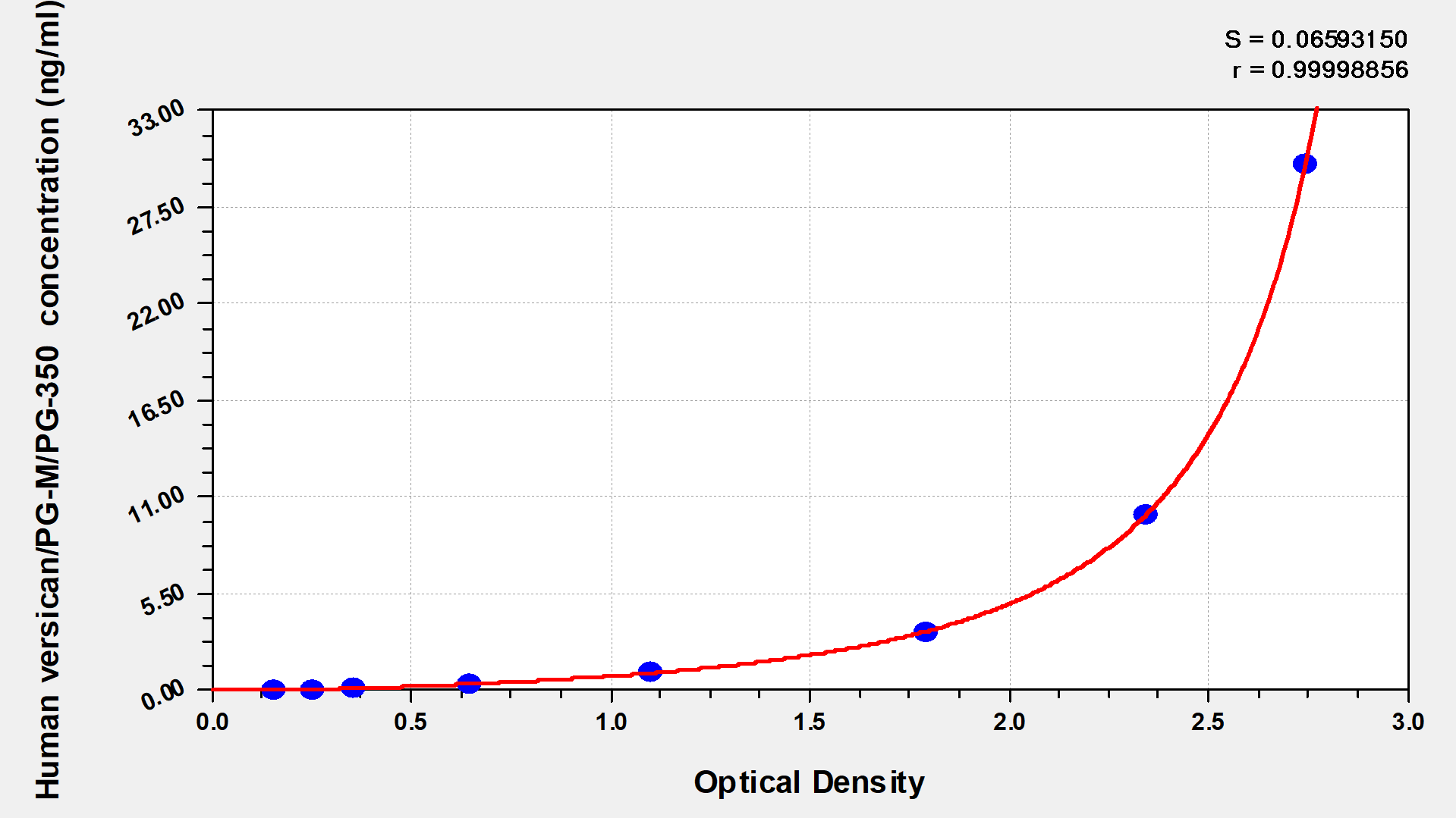最低檢測限是靈敏度的測試指標。由使用的抗體效價等決定的,在研發過程中,一般會優化保證高靈敏度、低背景的檢測結果從而大大提高試劑盒的靈敏度。檢測限越低,靈敏度越高。通過將零標準重復獲得的平均 O.D. 加上3個標準偏差來確定靈敏度。