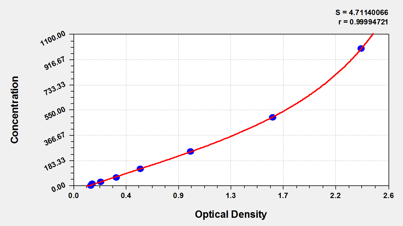 通過線性范圍來計算出實際的檢測樣本值,定量試劑盒標準曲線的相關系數R大于0.99。以CSB-E07270h(人脂聯素(ADP)ELISA Kit)為例的標準曲線。