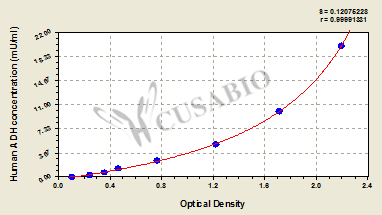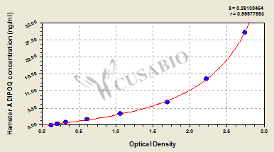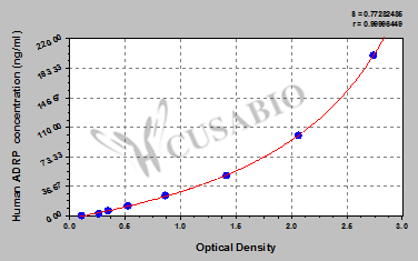 通過線性范圍來計算出實際的檢測樣本值,定量試劑盒標準曲線的相關系數R大于0.99。以CSB-E07270h(人脂聯素(ADP)ELISA Kit)為例的標準曲線。