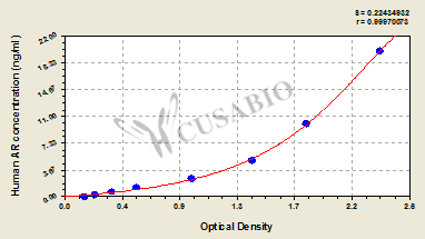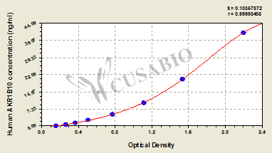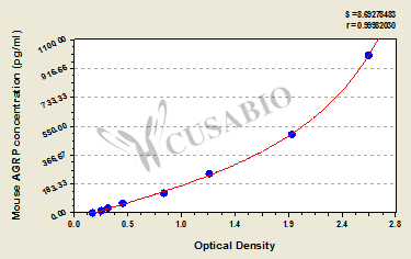 通過線性范圍來計算出實際的檢測樣本值,定量試劑盒標準曲線的相關系數R大于0.99。以CSB-E07270h(人脂聯素(ADP)ELISA Kit)為例的標準曲線。