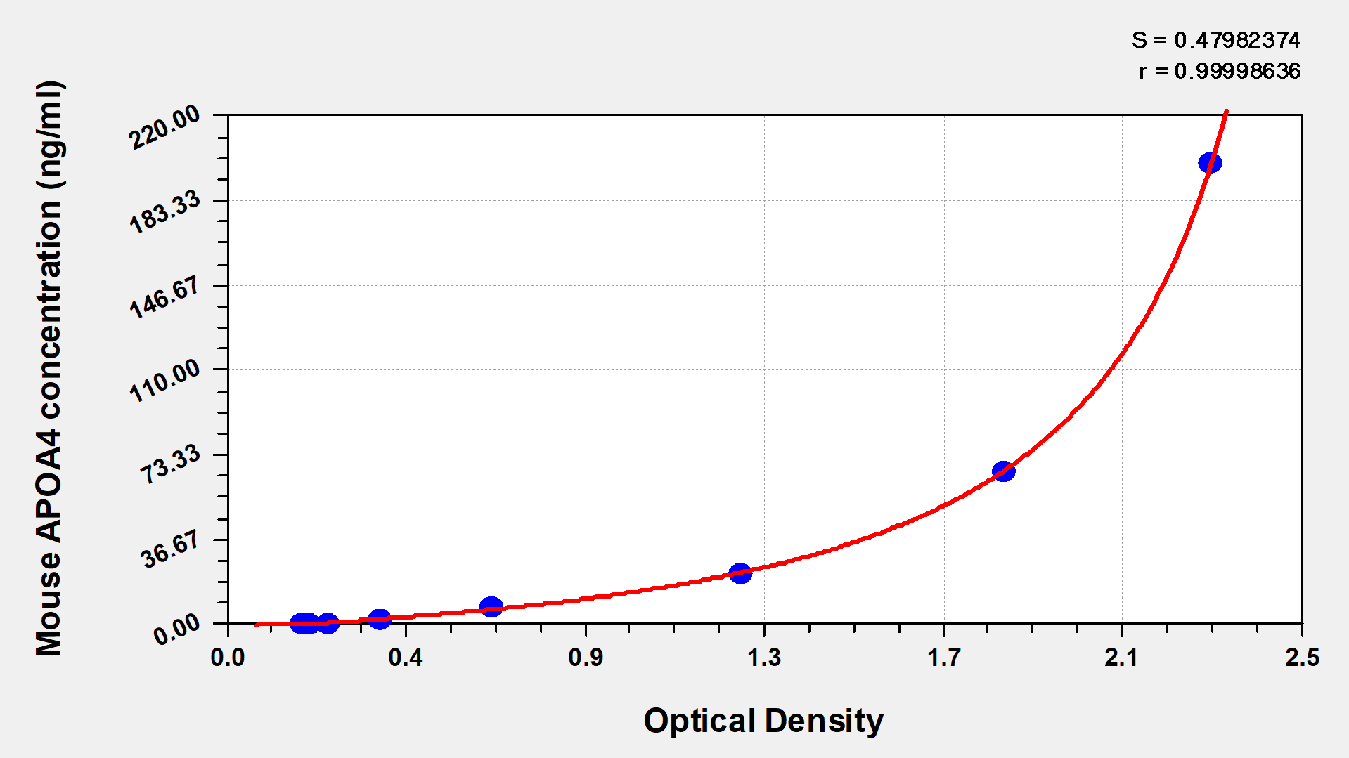 通過線性范圍來計(jì)算出實(shí)際的檢測(cè)樣本值,定量試劑盒標(biāo)準(zhǔn)曲線的相關(guān)系數(shù)R大于0.99。以CSB-E07270h(人脂聯(lián)素(ADP)ELISA Kit)為例的標(biāo)準(zhǔn)曲線。