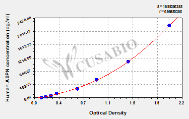 通過線性范圍來計算出實際的檢測樣本值,定量試劑盒標準曲線的相關系數R大于0.99。以CSB-E07270h(人脂聯素(ADP)ELISA Kit)為例的標準曲線。