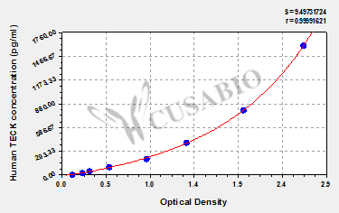 通過線性范圍來計算出實際的檢測樣本值,定量試劑盒標準曲線的相關系數R大于0.99。以CSB-E07270h(人脂聯素(ADP)ELISA Kit)為例的標準曲線。