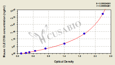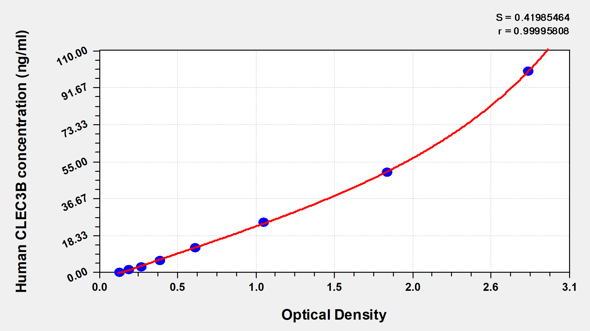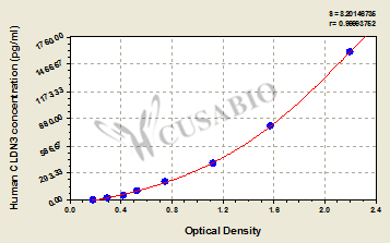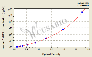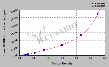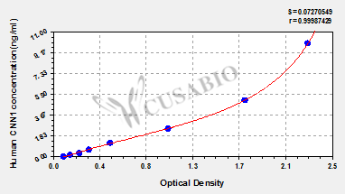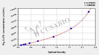 通過線性范圍來計算出實際的檢測樣本值,定量試劑盒標準曲線的相關(guān)系數(shù)R大于0.99。以CSB-E07270h(人脂聯(lián)素(ADP)ELISA Kit)為例的標準曲線。