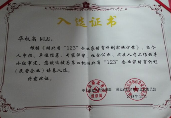 華美生物總經理華權高先生入選湖北省重大人才工程“123”企業家培育計劃