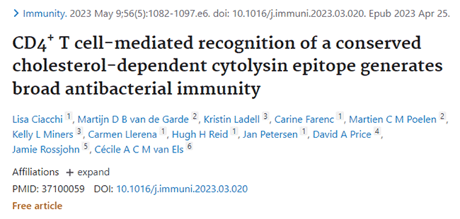 Immunity|IF=43.474 Ciacchi等人發(fā)現(xiàn)CD4+T細胞可以介導肺溶素表位的識別產(chǎn)生廣譜抗菌免疫