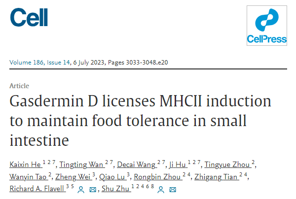 IF= 64.5 | Cell 朱書等人發(fā)現(xiàn)Gasdermin D可以通過調節(jié)MHCII水平誘導小腸維持對食物的耐受性