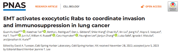 PNAS|上皮間質轉化(EMT)激活胞外分泌Rab蛋白,協(xié)調肺癌的侵襲和免疫抑制